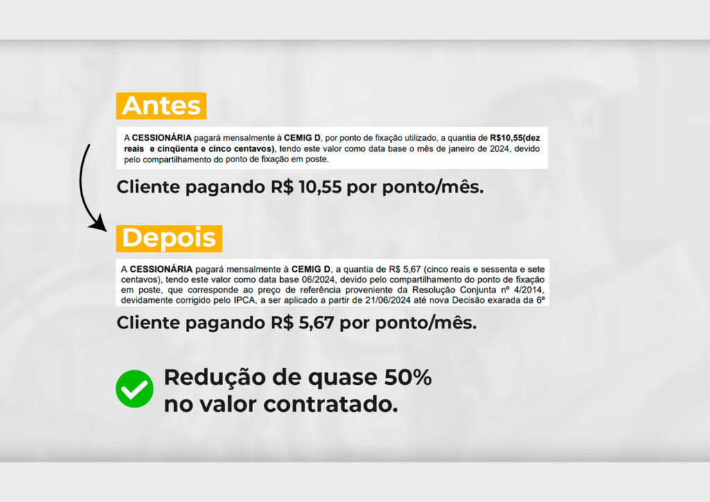 Com base na Resolução Conjunta 004/2014 da ANEEL/ANATEL, é possível revisar os contratos e aplicar o preço de referência oficial corrigido por índices como IPCA ou IGP-DI — o que, na prática, reduz expressivamente o valor pago por ponto por mês.