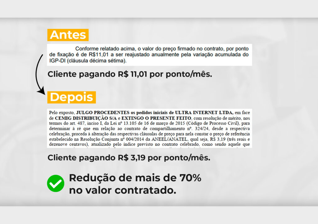 Em decisões recentes, provedores conseguiram revisar os valores com sucesso, chegando a economias de mais de 70% na fatura mensal.